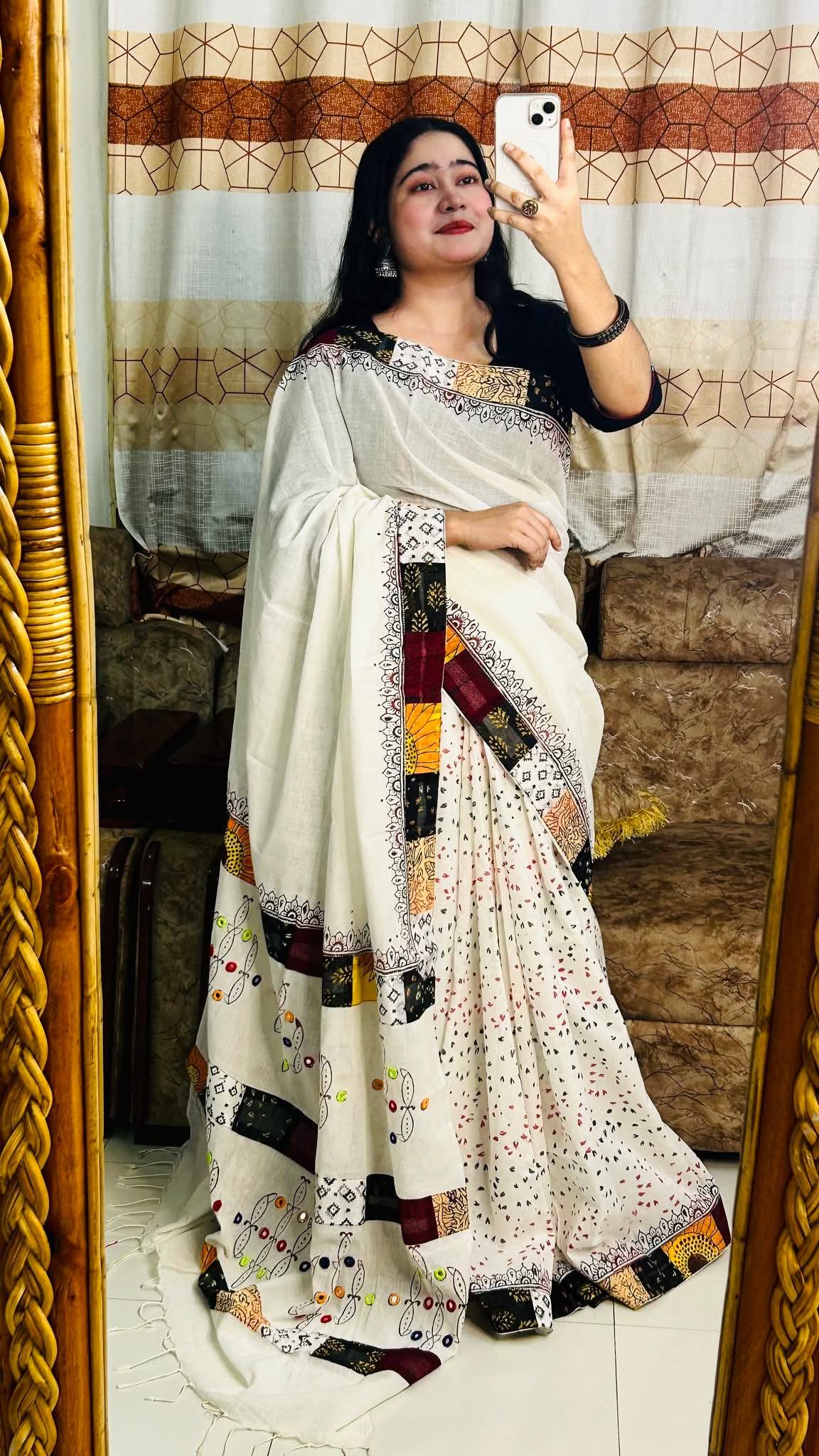 প্যাচওয়ার্ক ও হ্যান্ডপেইন্ট কটন শাড়ি || Patchwork & Hand-painted Cotton Saree